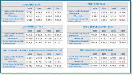 Hurrengo taulan azterketako enplegu-adierazle nagusietan lau promozioek izandako eboluzioa ikus daiteke: