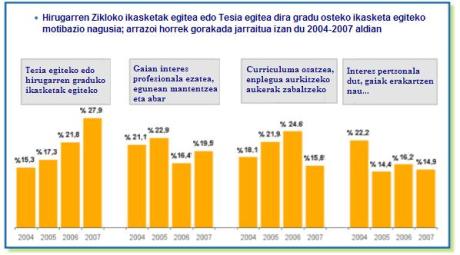 • Hirugarren Zikloko ikasketak egitea edo Doktoretza Tesia egitea dira gradu osteko ikasketa egiteko motibazio nagusia.