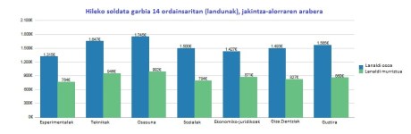 • Lanaldi osoan lan egiten dutenen batez besteko soldata 1.565 euro garbi da hilean, 14 ordainsaritan, eta 860 eurokoa lanaldi murriztuan. Zehazki, hauek dira lanaldi osoko batez besteko soldata garbiak, jakintza-arloen arabera, handienetik txikienera: Osasun Zientziak (1.745 euro), Teknikoak (1.647 euro), Gizarte Zientziak (1.500 euro), Giza Zientziak (1.493 euro), Ekonomiko-juridikoak (1.427 euro) eta Zientzia Esperimentalak (1.315 euro).
